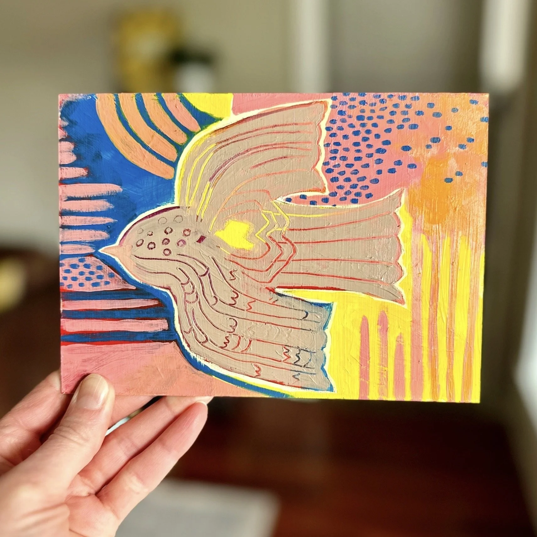 Each day, for 100 days, my goal was simply to get paint on the panel. Some days were easy - time was plentiful and creativity flowed, other days I had to push past the fear of imperfection and create anyway.